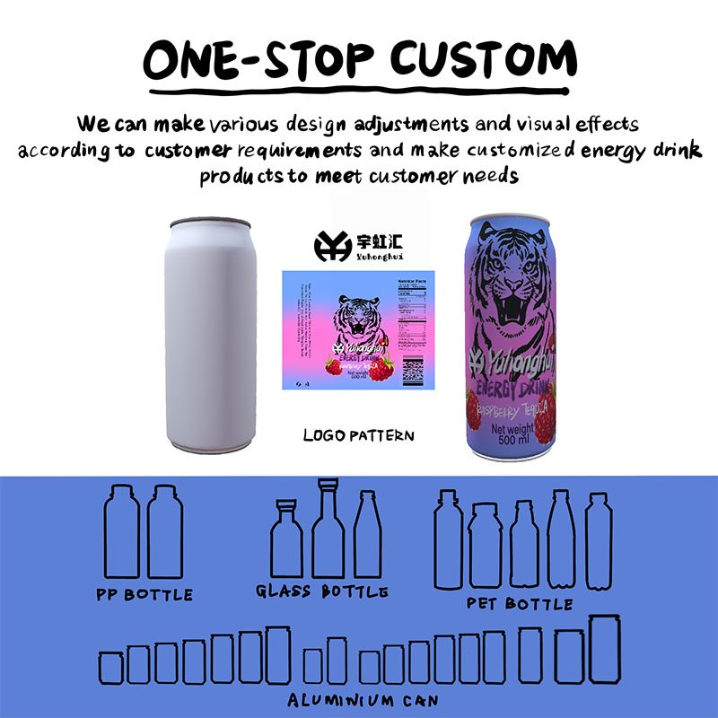 Since its establishment, Yuhonghui has always focused on the research and development and production of high-quality functional drinks, adhering to the brand concept of "natural, healthy, and empowering". In terms of raw material procurement, we have established long-term and stable cooperative relationships with high-quality raspberry planting bases and professional tequila raw material suppliers, strictly controlling the quality of raw materials to ensure that every raw material is of high quality and reliable, and ensuring the quality of products from the source. In the production process, advanced production equipment and technology are introduced, and a perfect quality control system is established. From raw material processing to finished product filling, every link undergoes strict testing to ensure product quality is safe and reliable. We are not only committed to providing consumers with delicious drinks that can effectively replenish energy, but also can provide customized services according to customer needs, including product formulation, packaging design, etc., to help partners expand the market and achieve mutual benefit and win-win results. Choosing Yuhonghui raspberry tequila-flavored energy drink (contains no alcohol) is to choose a perfect combination of natural, healthy and unique flavor, making every drink a kind of enjoyment and continuously empowering your life and work.