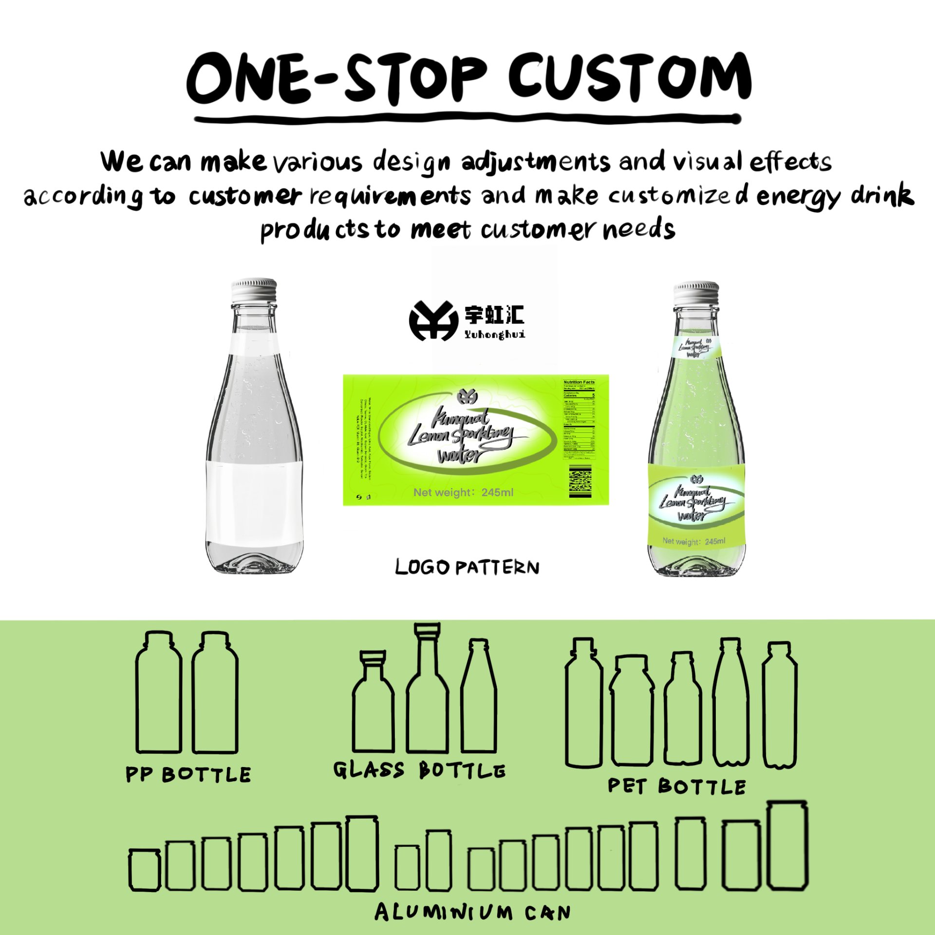Since its establishment, Yuhonghui has focused on the research and development and production of high-quality beverages, always adhering to the brand concept of "natural, delicious, and innovative". In the raw material procurement link, we have established a strict screening mechanism and cooperated with high-quality raw material suppliers such as kumquat planting bases and lemon planting bases for a long time to ensure that every kind of raw material is natural and high-quality. In terms of production technology, we have invested a lot of resources, introduced advanced production equipment, and set up a professional R & D team to continuously explore new flavor combinations and production processes, striving to transform natural raw materials into delicious beverages. We are not only committed to providing high-quality beverages for end consumers, but also can provide customized OEM services according to different customer needs, from product formulation, packaging design to production and delivery, to fully help partners expand their business and achieve win-win results. Choosing Yuhonghui screw-top glass bottle kumquat and lemon flavored soda water is to choose a refreshing experience that combines natural and delicious, and combines health and enjoyment, making every drink a pleasant journey for both taste and body and mind.