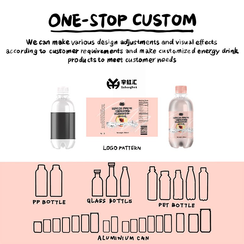 Since its establishment, Yuhonghui has focused on the research and development and production of high-quality beverages, always adhering to the brand concept of "natural, delicious, and innovative". In the raw material procurement link, we have established a strict screening mechanism and cooperated with high-quality raw material suppliers for a long time to ensure that every kind of raw material is natural and high-quality; In terms of production technology, we have invested a lot of resources, introduced advanced production equipment, and set up a professional R & D team to continuously explore new flavor combinations and production processes, striving to transform natural raw materials into delicious beverages. We are not only committed to providing high-quality beverages for end consumers, but also can provide customized OEM services according to different customer needs, from product formulation, packaging design to production and delivery, to fully help partners expand their business and achieve win-win results. Choosing Yuhonghui 250ml PET bottle white peach oolong flavored soda is to choose a refreshing experience that combines natural and delicious, and combines health and enjoyment, making every drink a pleasant journey for both taste and body and mind.