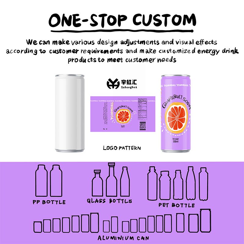 Since its establishment, Yuhonghui has focused on the research and development and production of high - quality beverages, always adhering to the brand concept of "natural, delicious, and innovative". In the raw material procurement link, we have established a strict screening mechanism and cooperated with high - quality raw material suppliers such as grapefruit planting bases for a long time to ensure that every kind of raw material is natural and high - quality. In terms of production technology, we have invested a lot of resources, introduced advanced production equipment, and set up a professional R & D team to continuously explore new flavor combinations and production processes, striving to transform natural raw materials into delicious beverages. We are not only committed to providing high - quality beverages for end consumers, but also can provide customized OEM services according to different customer needs, from product formulation, packaging design to production and delivery, to fully help partners expand their business and achieve win - win results. Choosing Yuhonghui 330ml SLEEK can grapefruit - flavored soda is to choose a refreshing experience that combines natural and delicious, and combines health and enjoyment, making every drink a pleasant journey for both taste and body and mind.