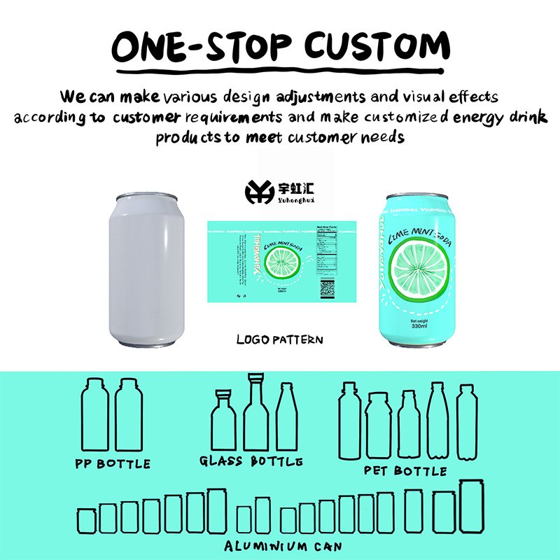 Since its establishment, Yuhonghui has focused on the research and development and production of high-quality beverages, always adhering to the brand concept of "natural, delicious, and innovative". In the raw material procurement link, we have established a strict screening mechanism and cooperated with high-quality raw material suppliers such as lime planting bases and mint planting areas for a long time to ensure that every kind of raw material is natural and high-quality. In terms of production technology, we have invested a lot of resources, introduced advanced production equipment, and set up a professional R & D team to continuously explore new flavor combinations and production processes, striving to transform natural raw materials into delicious beverages. We are not only committed to providing high-quality beverages for end consumers, but also can provide customized OEM services according to different customer needs, from product formulation, packaging design to production and delivery, to fully help partners expand their business and achieve win-win results. Choosing Yuhonghui 330ml standard can lime mint flavored soda is to choose a refreshing experience that combines natural and delicious, and combines health and enjoyment, making every drink a pleasant journey for both taste and body and mind.