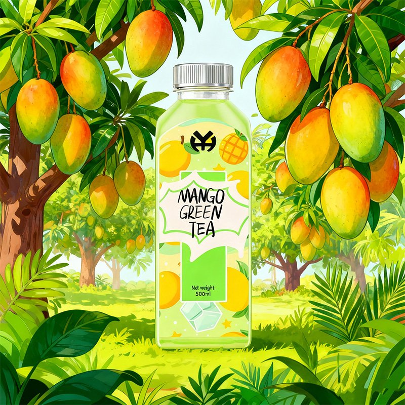 Exquisite Craftsmanship: Advanced extraction and blending processes are adopted. First, the sweet fruit aroma of mango and the quiet tea aroma of green tea are extracted respectively, and then they are blended in a golden ratio. After repeated adjustments, the fruit aroma of mango and the tea aroma of green tea blend with each other and complement each other, creating a mango green tea drink with unique flavor and rich layers. It is packaged in 500ml PET bottles. The bottle design is mainly in fresh green, with mango patterns, which is fresh and natural visually. At the same time, the PET bottle material is lightweight and has good sealing performance, which is easy to carry and store, meeting the drinking needs of different scenarios.