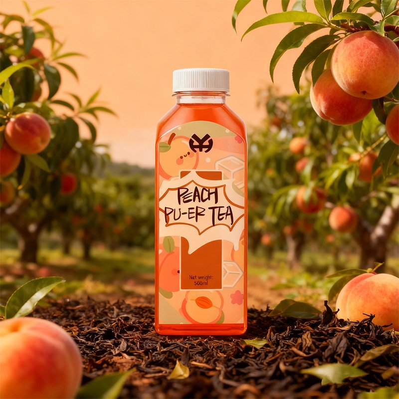 Exquisite Craftsmanship: Advanced extraction and blending processes are adopted. First, the sweet fruit aroma of peach and the mellow aged aroma of Pu-er tea are extracted respectively, and then they are blended in a precise ratio. After repeated adjustments, the fruit aroma of peach and the aged aroma of Pu-er tea are perfectly combined to create a peach Pu-er tea drink with unique flavor and rich layers. It is packaged in 500ml PET bottles. The bottle design is mainly in warm orange, with peach patterns, which is fresh and cute visually. At the same time, the PET bottle material is lightweight and has good sealing performance, which is easy to carry and store, meeting the drinking needs of different scenarios.