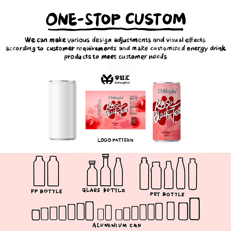 Since its establishment, Yuhonghui has always focused on the research and development and production of high-quality tea drinks, adhering to the brand concept of "natural, healthy, and delicious". In terms of raw material procurement, we have established long-term and stable cooperative relationships with high-quality rose planting bases and black tea producing areas, and conduct strict testing on each batch of raw materials to ensure their naturalness and high quality. In the production process, advanced production equipment and technology are introduced, and a complete quality control system is established. From raw material processing to finished product filling, every link is strictly controlled to ensure product quality is safe and reliable. We are not only committed to providing consumers with delicious and healthy tea drinks but also can provide customized product formula and packaging design services according to customer needs, helping partners expand the market and achieve mutual benefit and win-win results. Choosing Yuhonghui rose black tea drink is to choose a perfect combination of natural, healthy, and delicious, making every drink an enjoyment.