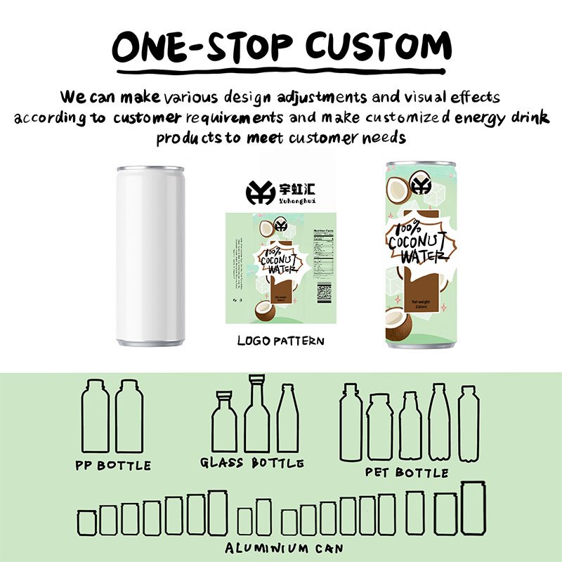 Since its establishment, Yuhonghui has been committed to providing consumers with high-quality natural drinks. Adhering to the brand concept of "natural, healthy and delicious", we strictly select high-quality raw material suppliers worldwide and have established long-term and stable cooperative relationships with coconut growers in tropical regions to ensure that every drop of coconut water is natural and of excellent quality. In the production process, we continuously introduce internationally advanced production equipment and technology and establish a complete quality control system. From raw material procurement, production and processing to finished product delivery, every link is strictly inspected and monitored to ensure product quality is safe and reliable. We not only focus on product quality but also pay attention to consumers' needs and experiences, constantly launching diversified packaging and flavors to meet the preferences of different consumers. At the same time, we also provide customized services, tailoring product formulas and packaging designs according to customers' needs to help partners expand the market. Choosing Yuhonghui's coconut water means choosing nature, health and deliciousness. We look forward to working with you to create a better future.