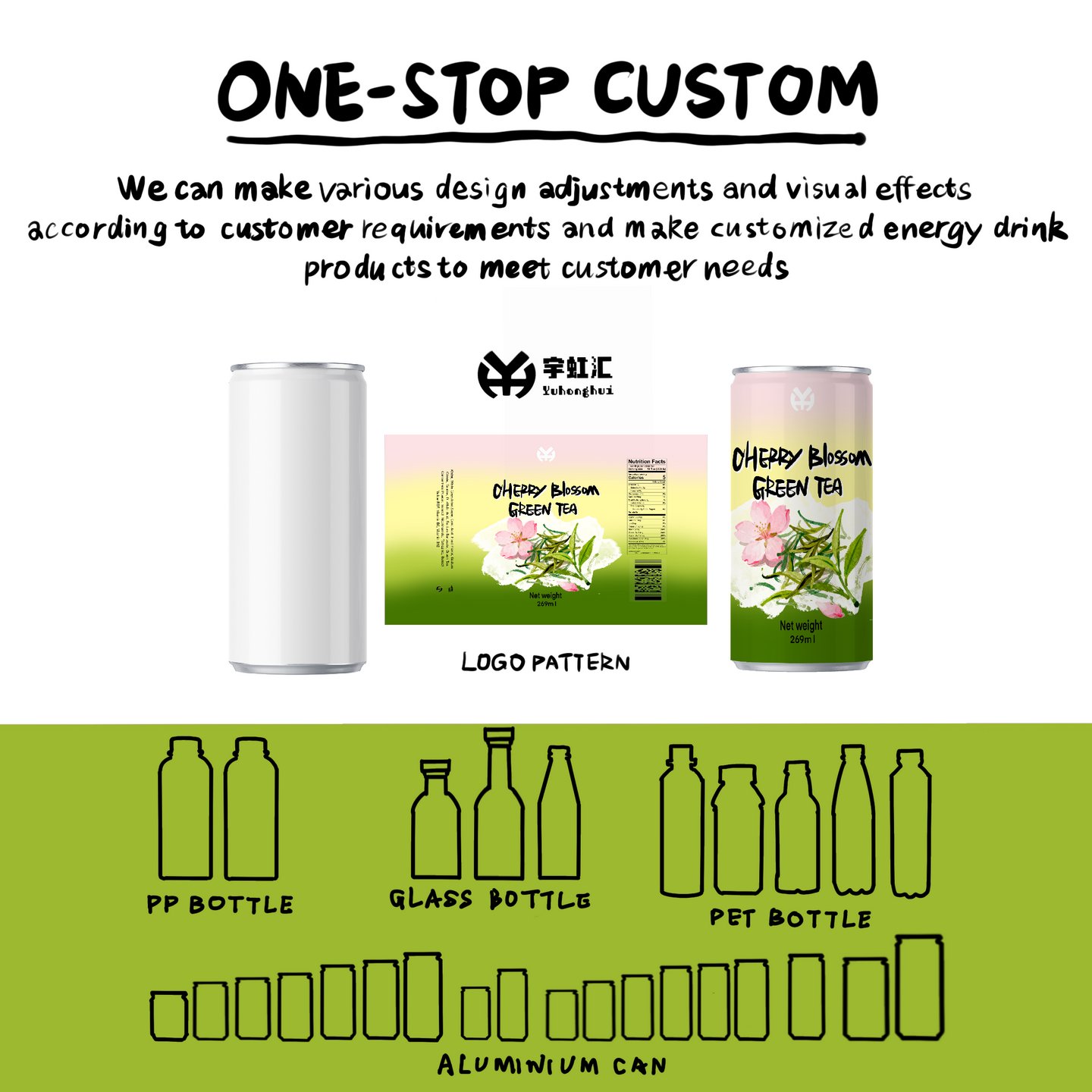 Qingdao Yuhonghui presents 269ml Canned Cherry Blossom Green Tea, with core keywords including “30°N Pre-Ming High-Altitude Green Tea, Organic Japanese Late Cherry Blossom Petals, Low-Temperature Aroma-Locking Cold Extraction, Zero-Additive Romantic Formula, Export-Grade Aseptic Filling, Customizable OEM/ODM Services”. We carefully select pre-Ming green tea from the 30°N golden tea area of Tianmu Mountain in Zhejiang, where the tea leaves are nourished by high-altitude clouds and mist, containing over 18.5% polyphenols with both freshness and lingering sweetness. Paired with organic petals of Japanese late cherry blossom varieties, which feature plump blooms and elegant aroma, with 1.7 times more flavonoids than ordinary cherry blossoms. Backed by our factory’s 100,000-level purification workshop, we use low-temperature cold extraction to maximize the retention of raw material activity. From tea leaf selection and cherry blossom petal processing to aseptic filling, every step is monitored by our CNAS-certified laboratory, and each batch passes international authoritative tests such as SGS and FDA, with pesticide residues and microbial indicators far below international standards, making it a premium tea with both romance and health benefits customized for global buyers.