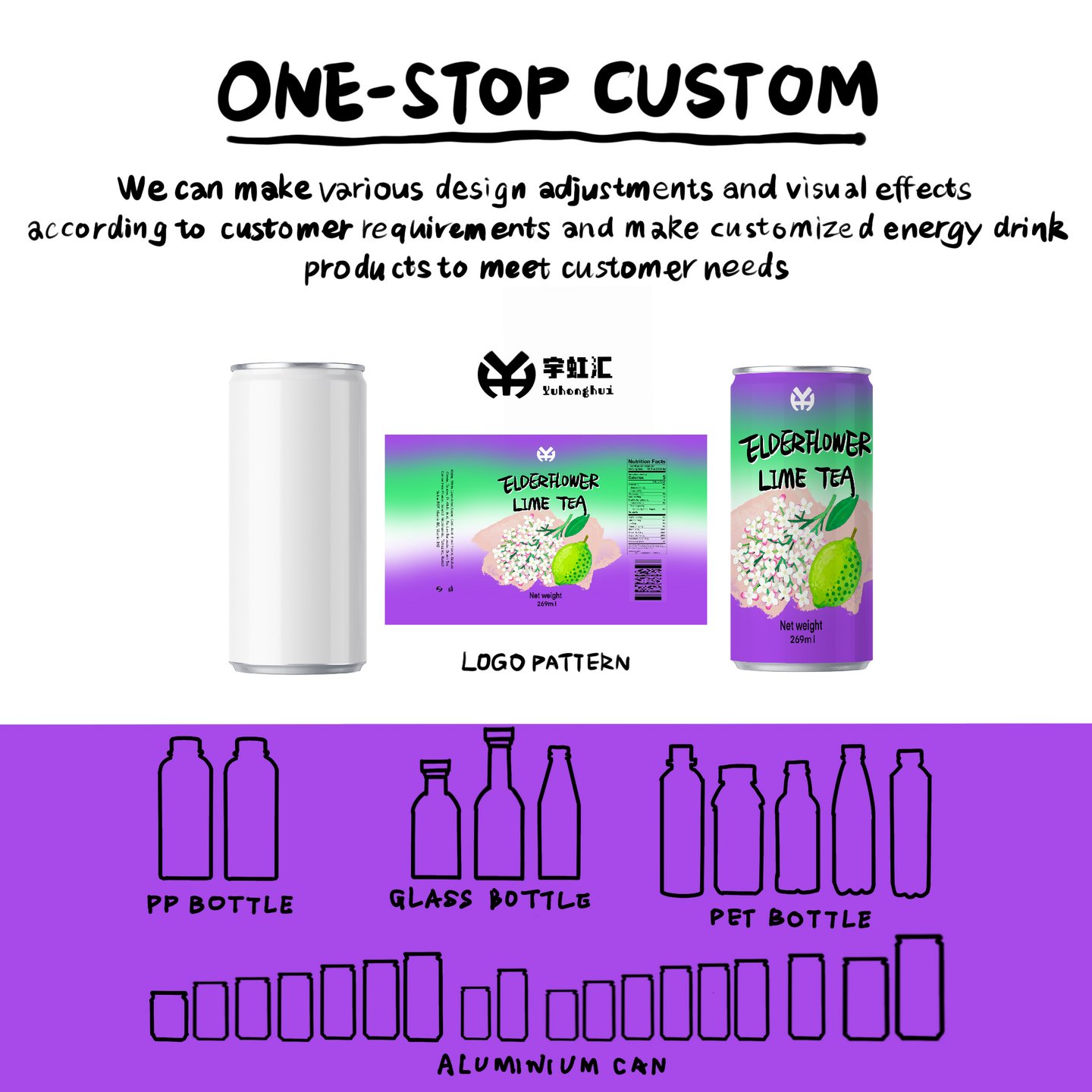 Qingdao Yuhonghui presents 269ml Canned Elderflower & Lime Tea, with core keywords including “EU Organic Elderflower Ingredients, 22°N Fresh Lime Juice, Zero-Additive Refreshing Formula, Export-Grade Aseptic Filling, Customizable OEM/ODM Services”. We carefully select elderflower from organic plantations in the Balkan Peninsula of Europe, where the flower spikes are plump and fragrant, with 1.8 times more flavonoids than ordinary producing areas; paired with fresh limes from the 22°N tropical planting belt, which have juicy pulp, mild acidity, and 20% higher vitamin C content than ordinary lemons. Backed by our factory’s 100,000-level purification workshop, we use low-temperature cold extraction technology to retain the activity of raw materials. From flower spike selection to aseptic filling, every step is monitored by our CNAS-certified laboratory, and each batch passes international authoritative tests such as SGS and BRC, with pesticide residues and microbial indicators far below EU standards, making it a premium healthy beverage customized for global buyers.
