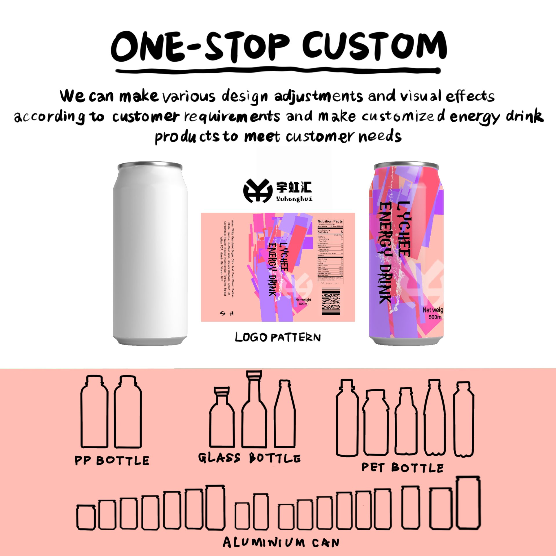 Qingdao Yuhonghui presents 500 ml Canned Lychee Flavored Energy Drink, with core keywords including “Lingnan Fresh Lychee Cold Extraction Formula, Gentle Long-Lasting Energy Boost, Zero-Additive Healthy Formula, Export-Grade Aseptic Filling, Customizable OEM/ODM Services”. We carefully select seasonal Feizixiao lychees from the core production area of Lingnan, Guangdong—known for plump, juicy flesh and moderate fructose content. Paired with taurine, B vitamins, and other professional energy ingredients, through precise blending in our in-house lab, we achieve a dual experience of “sweet fruit aroma” and “gentle energy boost”. Backed by our 100,000-level purification workshop, the entire process from fresh fruit cold pressing to aseptic filling is fully automated. Each batch passes international authoritative tests such as SGS and FDA, with caffeine content and microbial indicators complying with EU and North American food standards, making it a premium functional beverage customized for global buyers.
