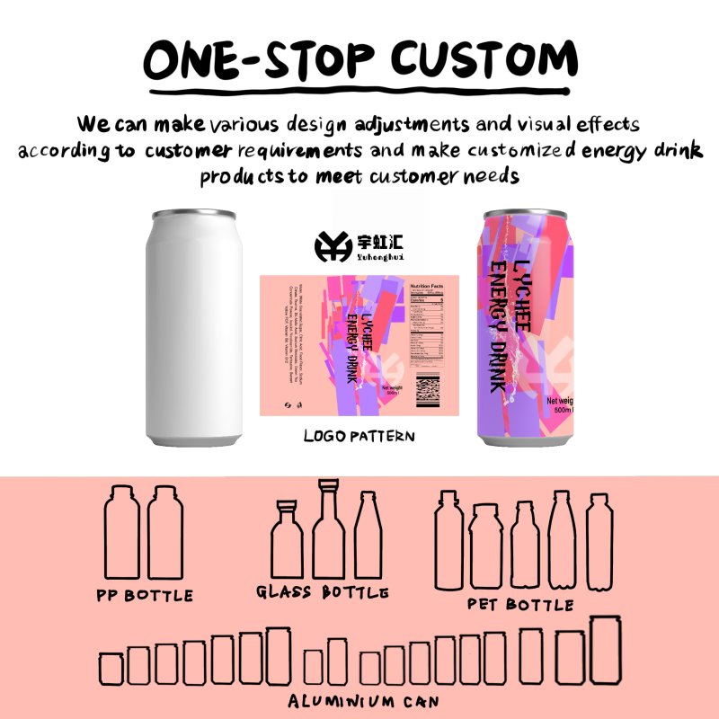 Core Ingredients | Purified Water, Lychee Juice Concentrate (juice content ≥5%), Scientifically Formulated Energy Components (taurine/vitamin B complex/caffeine), Food-Grade Compliant Additives, Carbon Dioxide (support low-sugar/sugar-free beverage customization, adapted to healthy beverage category, no artificial preservatives or synthetic colors) |
