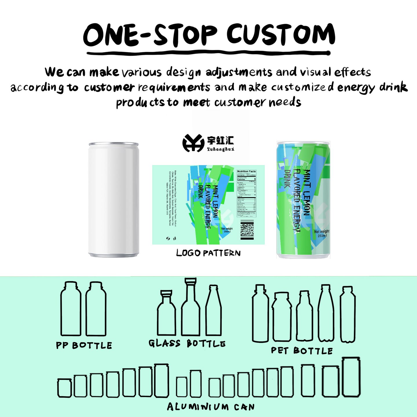 Qingdao Yuhonghui presents 250ml Canned Mint Lemon Flavored Energy Drink, with core keywords including “Dual Freshness Boost Formula, Rapid Energy Replenishment Technology, Zero-Burden Healthy Formula, Export-Grade Aseptic Filling, Customizable OEM/ODM Services”. We carefully select US-imported food-grade menthol and freshly squeezed lemon juice from the 37°N Shandong Peninsula as the flavor base, paired with taurine, B vitamins, and other professional energy ingredients. Through precise blending in our in-house lab, we achieve a dual experience of “refreshing taste” and “efficient energy boost”. Backed by our 100,000-level purification workshop, the entire process from raw material extraction to aseptic filling is fully automated. Each batch passes international authoritative tests such as SGS and FDA, with caffeine content and microbial indicators complying with EU and North American food standards, making it a premium functional beverage customized for global buyers.