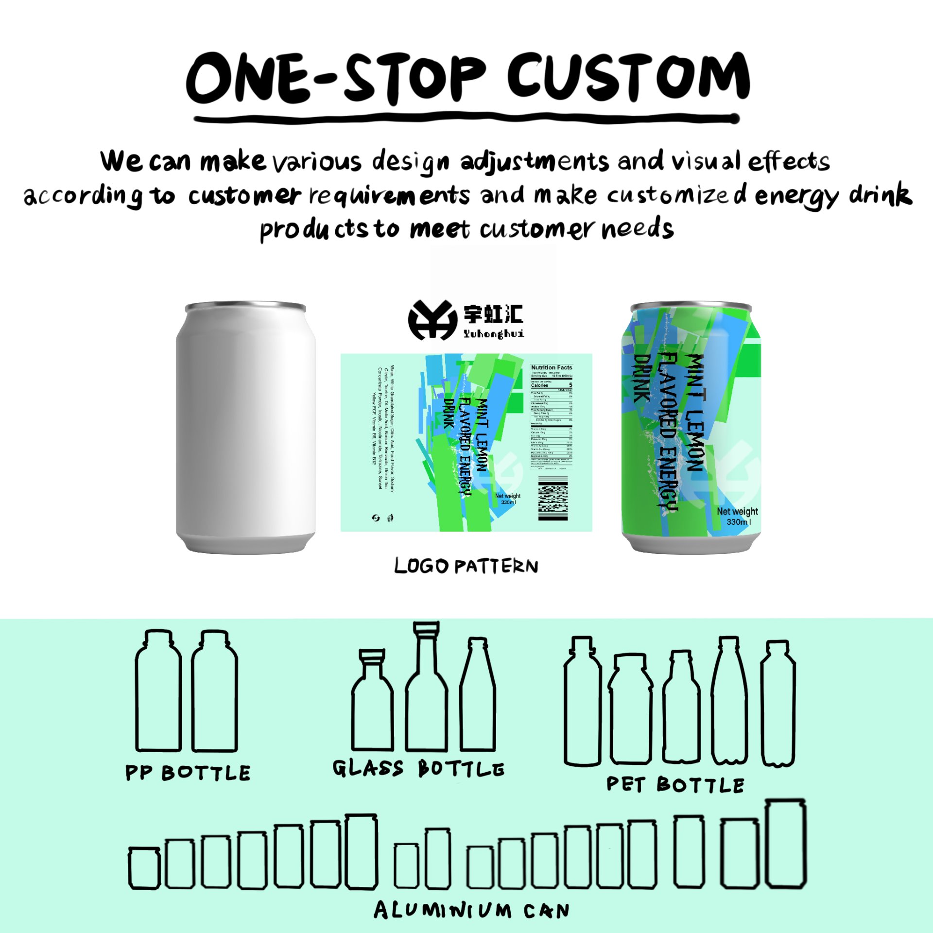 Qingdao Yuhonghui presents 330 ml Canned Mint Lemon Flavored Energy Drink, with core keywords including “Dual Freshness Boost Formula, Rapid Energy Replenishment Technology, Zero-Burden Healthy Formula, Export-Grade Aseptic Filling, Customizable OEM/ODM Services”. We carefully select US-imported food-grade menthol and freshly squeezed lemon juice from the 37°N Shandong Peninsula as the flavor base, paired with taurine, B vitamins, and other professional energy ingredients. Through precise blending in our in-house lab, we achieve a dual experience of “refreshing taste” and “efficient energy boost”. Backed by our 100,000-level purification workshop, the entire process from raw material extraction to aseptic filling is fully automated. Each batch passes international authoritative tests such as SGS and FDA, with caffeine content and microbial indicators complying with EU and North American food standards, making it a premium functional beverage customized for global buyers.