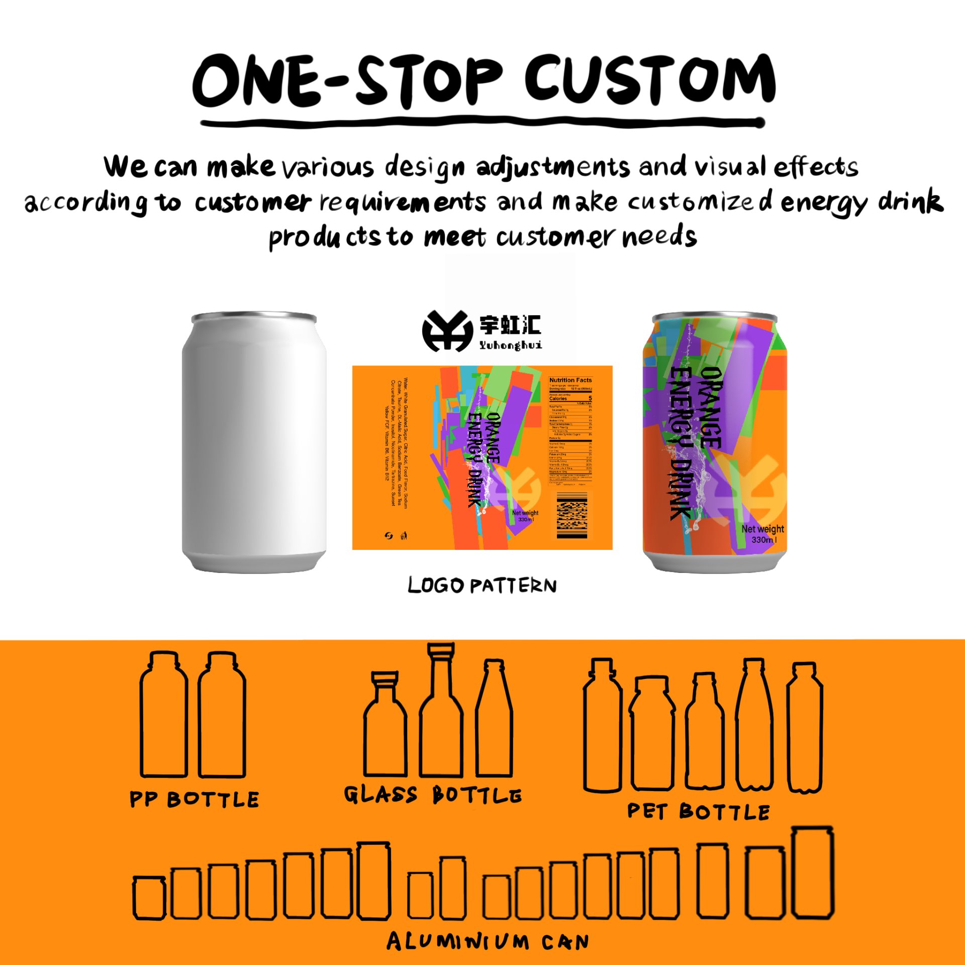 Qingdao Yuhonghui presents 330 ml Canned Orange Flavored Energy Drink, with core keywords including “Fresh Orange Cold Extraction Formula, Rapid Gentle Energy Boost, Zero-Additive Healthy Formula, Export-Grade Aseptic Filling, Customizable OEM/ODM Services”. We carefully select seasonal fresh oranges from the core production area of Gannan Navel Oranges, paired with taurine, B vitamins, and other professional energy ingredients. Through precise blending in our in-house lab, we achieve a dual experience of “authentic orange flavor” and “efficient energy boost”. Backed by our 100,000-level purification workshop, the entire process from fresh fruit cold pressing to aseptic filling is fully automated. Each batch passes international authoritative tests such as SGS and FDA, with caffeine content and microbial indicators complying with EU and North American food standards, making it a premium functional beverage customized for global buyers.