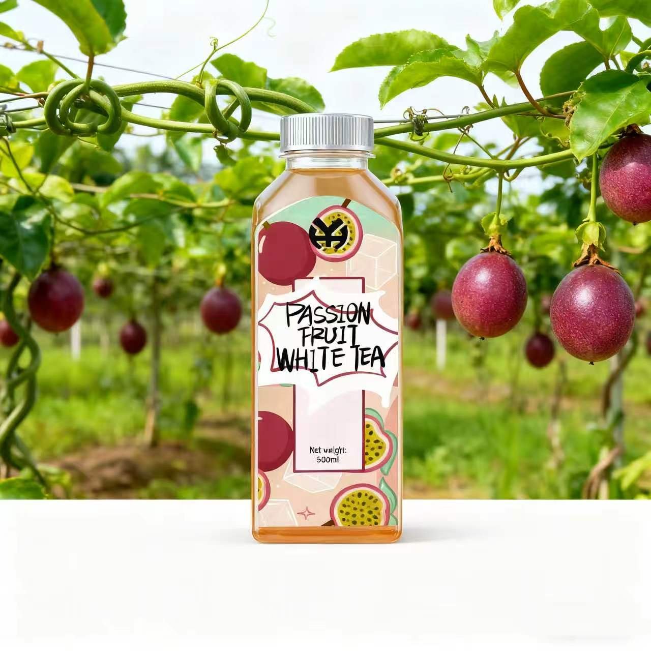 | Packaging Form | Food-grade transparent PET bottle (screw cap sealed design, 500ml core model), supports all packaging bottle/can customization: full adaptation of PET bottle/Sleek can/Standard can/Special shape can, custom packaging design fully adapts to brand vision for tea drink, bottle body can be customized with warm gradient, hand-drawn passion fruit patterns, brand LOGO, suitable for B2B brand customization and terminal display for flower & fruit tea |