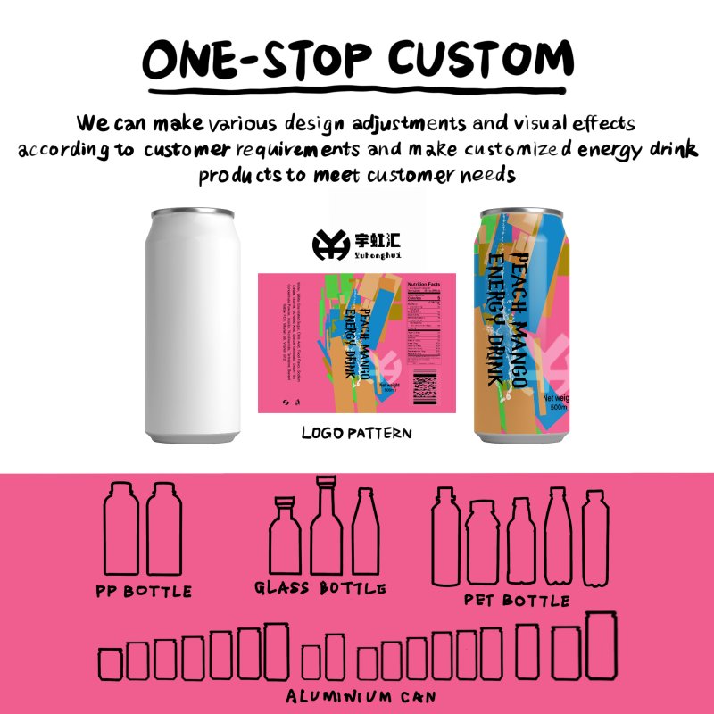 Equipped with a fully automated beverage production line and a 100,000-level clean production workshop, we implement full-process traceability quality control from peach and mango raw material procurement, formula R&D to aluminum can filling and delivery, strictly implementing key control point management of HACCP system. Each batch of products is provided with a full set of test reports including juice content, energy components, total bacterial count and heavy metal residues to ensure the stable and unified quality of energy drink OEM/ODM. The 500ml standard aluminum can sealing technology preserves freshness, effectively isolating air and light to lock the original peach mango compound flavor, extending shelf life, resistant to transportation and easy to display. It is suitable for international beverage shipping and terminal channel display such as supermarkets, convenience stores and gas stations, perfectly meeting the large-scale procurement, channel-exclusive supply and global export needs of B2B beverage clients.