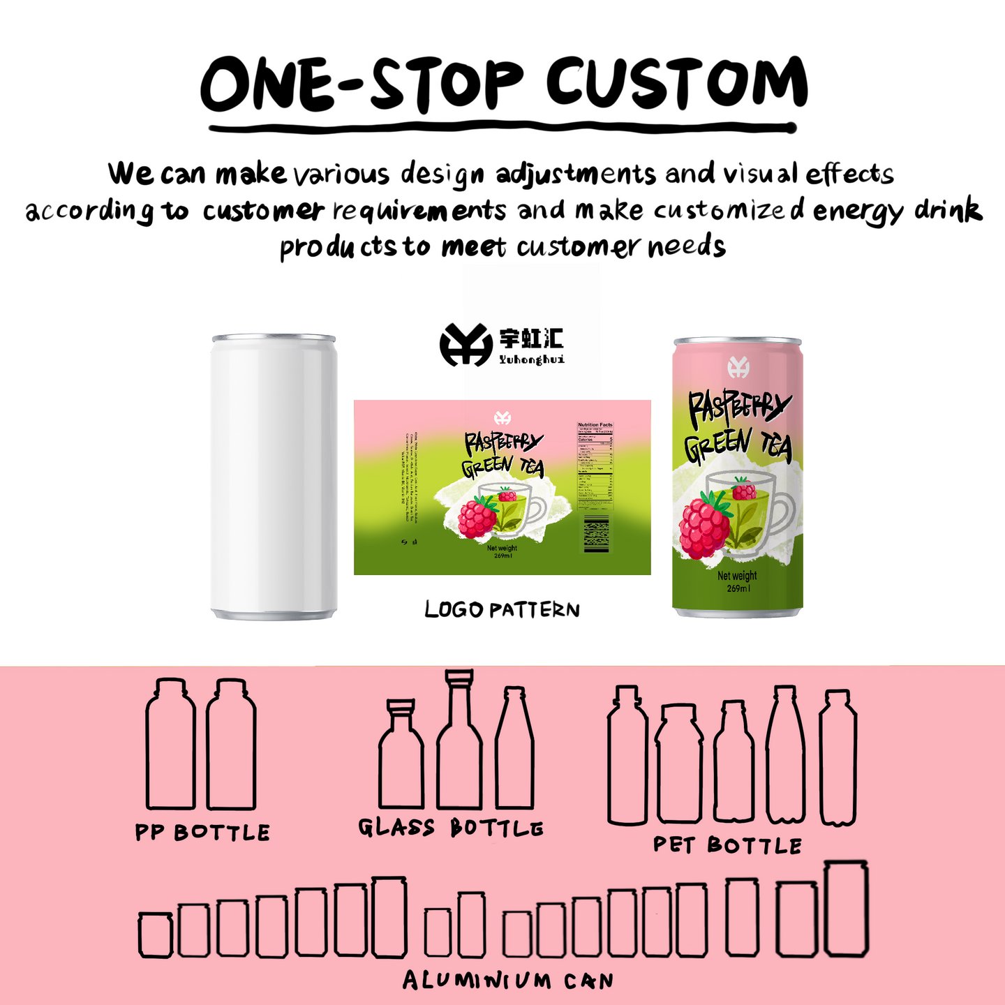 Qingdao Yuhonghui presents 269ml Canned Raspberry Green Tea, with core keywords including “30°N High-Altitude Green Tea, Organic Raspberry Cold Extraction, Zero-Additive Refreshing Formula, Export-Grade Aseptic Filling, Customizable OEM/ODM Services”. We carefully select pre-Ming green tea from the 30°N golden tea area of Tianmu Mountain in Zhejiang, where the tea leaves are nourished by high-altitude clouds and mist, containing over 18% polyphenols with both freshness and lingering sweetness. Paired with ripe raspberries from organic planting bases on the Shandong Peninsula, the fruits are plump and juicy, with 1.6 times more anthocyanins than ordinary raspberries. Backed by our factory’s 100,000-level purification workshop, we use low-temperature cold extraction to lock in freshness. From tea leaf selection and raspberry pressing to aseptic filling, every step is monitored by our CNAS-certified laboratory, and each batch passes international authoritative tests such as SGS and FDA, with pesticide residues and microbial indicators far below international standards, making it a premium healthy tea customized for global buyers.