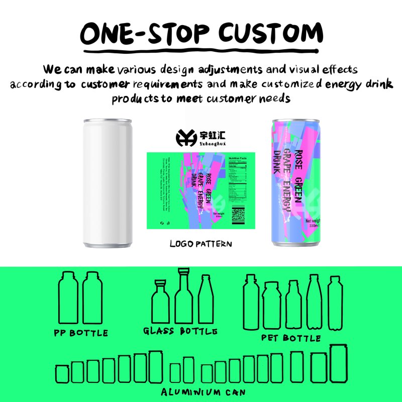 Every sip blends elegant rose fragrance and crisp green grape sweetness, with soft floral notes, fresh fruit aroma and smooth bubbles, offering a rich and layered taste that is not greasy, instantly awakening your whole body's vitality! This Rose Green Grape Flavored Energy Drink is carefully crafted by a professional functional beverage OEM/ODM source factory, featuring dual floral and fruity notes and scientific energy boost without burden. Adopting a customized specification of 330ml sleek aluminum can, it is deeply adapted to diverse demands such as B2B beverage customization, functional drink OEM/ODM, export beverage manufacturing, and channel-exclusive beverage R&D. We provide one-stop OEM/ODM full-link customization services, with on-demand exclusive customization from formula R&D, bottle type customization to packaging design, helping brands efficiently layout the global functional beverage market and create best-selling OEM energy drink products! Direct supply from the source factory, free sample for testing (freight included), welcome B2B customers to negotiate cooperation!