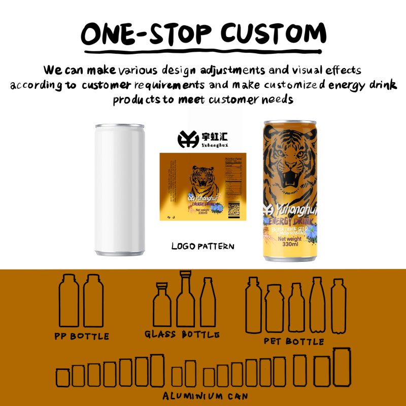 Customization Service | One-stop full-link OEM/ODM customization for functional beverage & ENERGY DRINKS, covers packaging, formula, Sleek 330ml slim can specification all-round B2B customization needs, free samples (freight included) available, supports private label, formula customization, specification adjustment, foreign trade beverage export certification handling, foreign language label design, fully helps B2B customers build their own beverage & drinks brands |