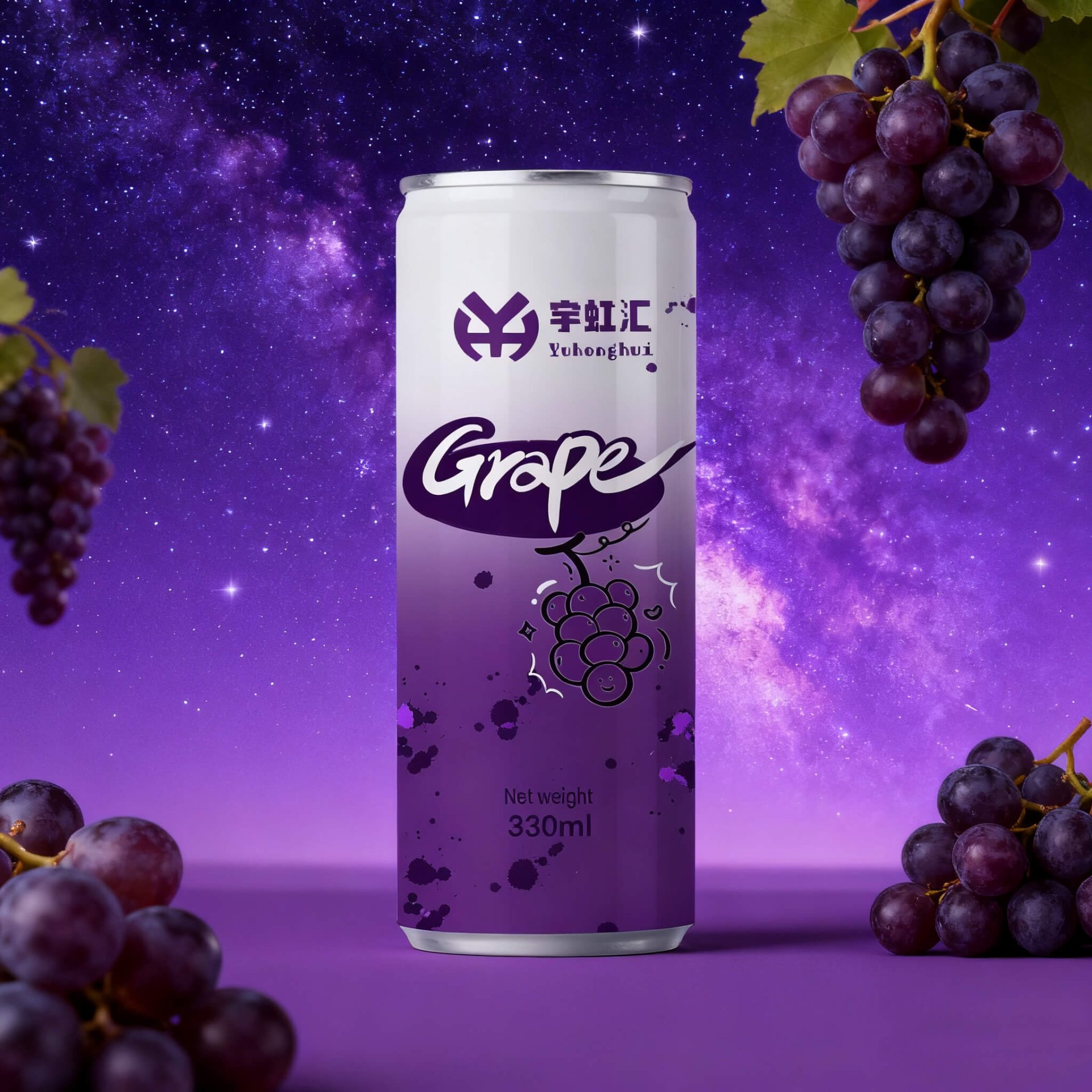 | Packaging Form | Food-grade standard aluminum easy-open can (easy-open design), supports all can type can customization: full coverage of Sleek/Standard/Special shape cans, custom packaging design fully adapts to brand vision, can body can be customized with purple-white gradient, grape patterns, brand LOGO, suitable for B2B brand customization and terminal display |