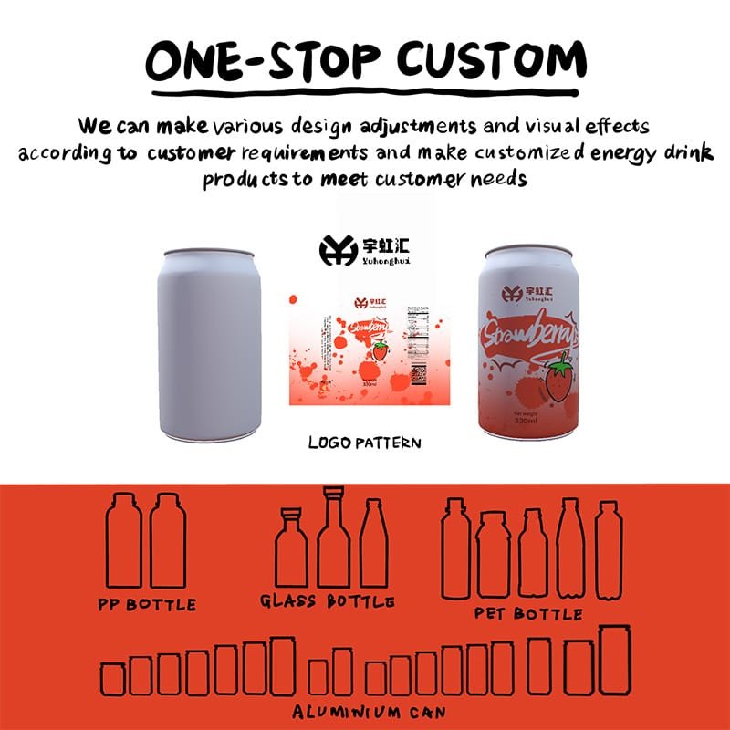 | Customization Service | One-stop OEM/ODM customization for beverage and FRUIT JUICE, covering all-dimensional B2B customization needs for packaging, formula, specification, all can types, free samples available (freight included), supports private label production, formula customization, specification adjustment, foreign trade beverage export certification handling, fully assisting B2B customers in launching own brands beverage and fruit juice brands |