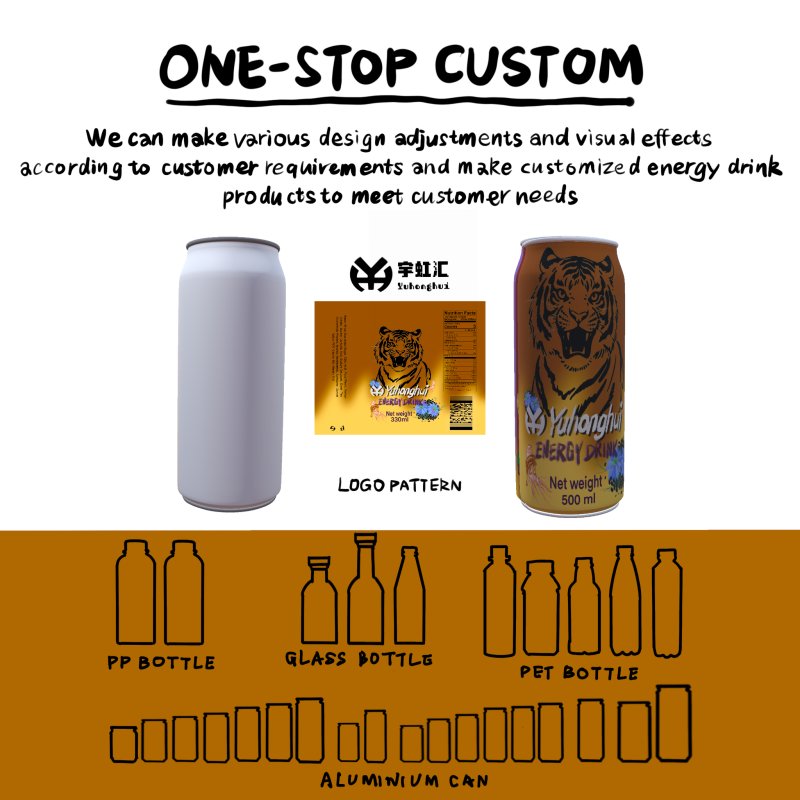 Customization Service | One-stop full-link OEM/ODM customization for functional beverage & ENERGY DRINKS, covers packaging, formula, Standard 500ml slim can specification all-round B2B customization needs, free samples (freight included) available, supports private label, formula customization, specification adjustment, foreign trade beverage export certification handling, foreign language label design, fully helps B2B customers build their own beverage & drinks brands |