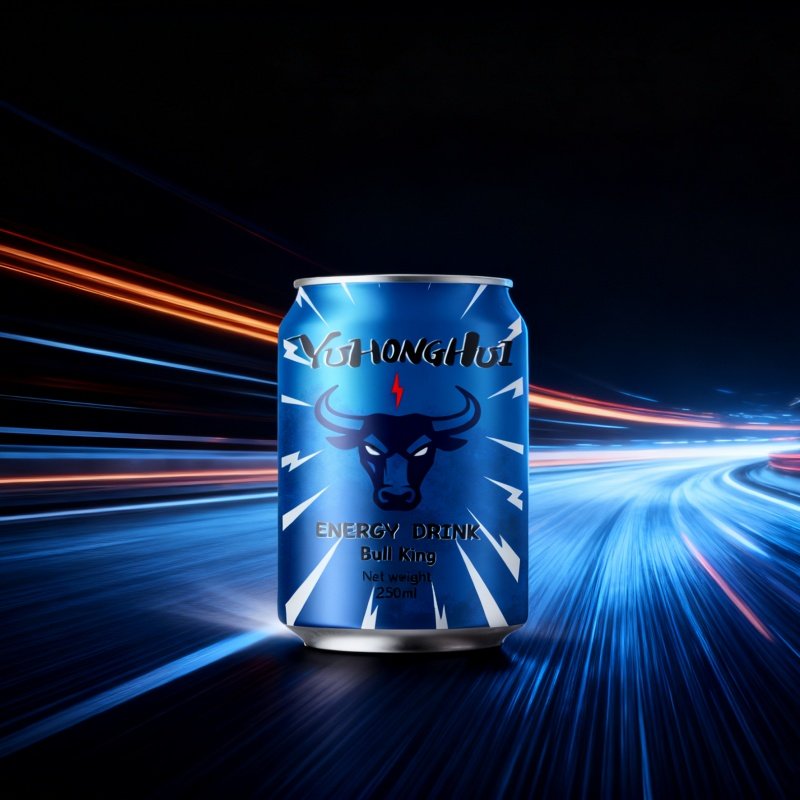 • Packaging Customization: LOGO, patterns, text, colors fully adjustable, supports high-end brand exclusive beverage original design. Standard 250ml slim can customizable with electric blue lightning, strong lines, IP co-branding, trendy text high-end visuals, strictly complies with beverage label regulations of different countries/regions (e.g. FDA label compliance, includes ingredients, nutrition & allergen info), helps B2B customers build exclusive high-end brand drinks vision
