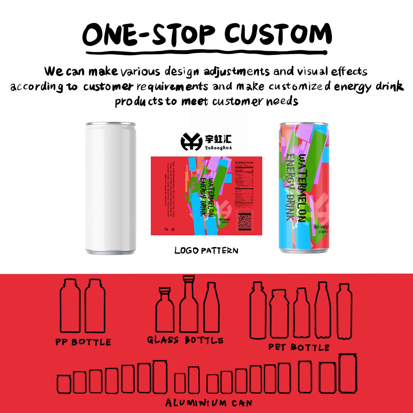 Qingdao Yuhonghui presents 330 ml Canned Watermelon Flavored Energy Drink, with core keywords including “Sand-Flesh Kirin Watermelon Cold Extraction Formula, Rapid Hydration & Energy Boost, High Electrolyte Healthy Formula, Export-Grade Aseptic Filling, Customizable OEM/ODM Services”. We carefully select seasonal sand-flesh Kirin watermelons from the core production area of Weifang, Shandong—known for juicy flesh and moderate fructose content. Paired with taurine, B vitamins, and electrolytes, through precise blending in our in-house lab, we achieve a dual experience of “refreshing fruit flavor” and “hydration & energy boost”. Backed by our 100,000-level purification workshop, the entire process from fresh fruit cold pressing to aseptic filling is fully automated. Each batch passes international authoritative tests such as SGS and FDA, with caffeine content and microbial indicators complying with EU and North American food standards, making it a premium functional beverage customized for global buyers.