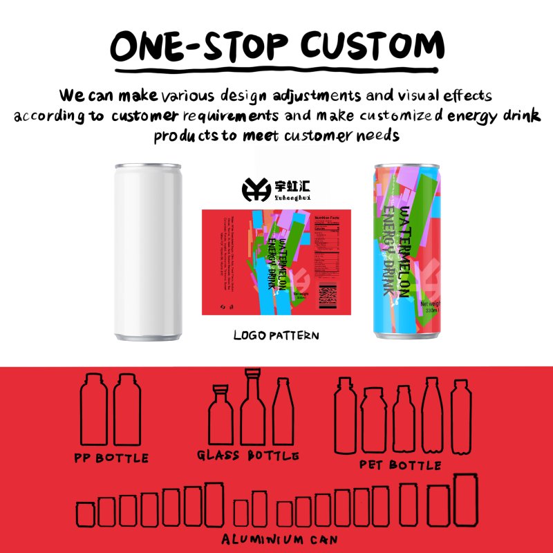 Core Ingredients | Purified Water, Watermelon Juice Concentrate (juice content ≥5%), Scientifically Formulated Energy Components (taurine/vitamin B complex/caffeine), Food-Grade Compliant Additives, Carbon Dioxide (support low-sugar/sugar-free beverage customization, adapted to healthy beverage category, no artificial preservatives or synthetic colors) |